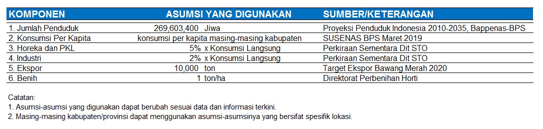 Asumsi yang Digunakan dalam Menghitung Prognosa Bawang Merah 2020