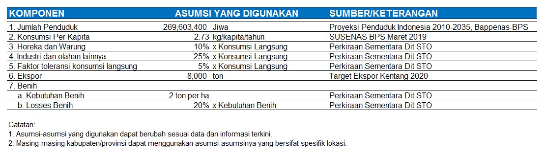 Asumsi yang Digunakan dalam Menghitung Prognosa Kentang 2020