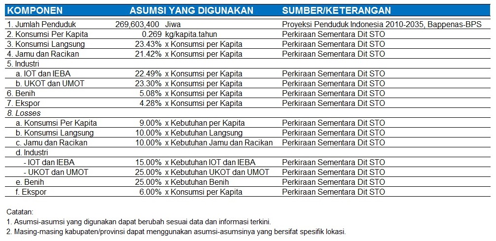Asumsi yang Digunakan dalam Menghitung Prognosa Kunyit 2020